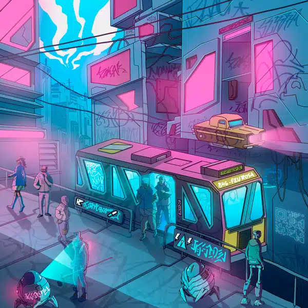 Nas ruas de neon e concreto, a guerra foi declarada. De um lado, a explosão de cores e ritmo dos Hip-bots. Do outro, a frieza repressora dos Cop-bots. A batalha pela alma do futuro começou.