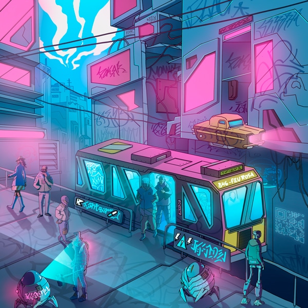 Nas ruas de neon e concreto, a guerra foi declarada. De um lado, a explosão de cores e ritmo dos Hip-bots. Do outro, a frieza repressora dos Cop-bots. A batalha pela alma do futuro começou.